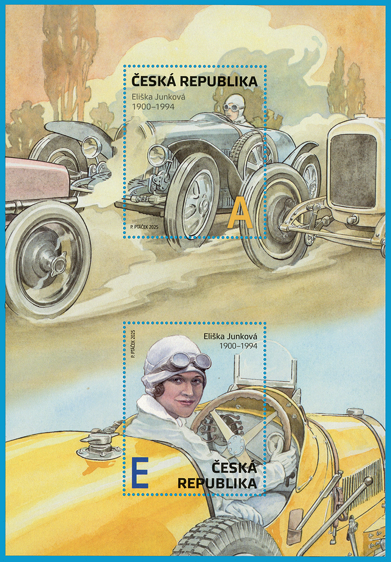 Česká pošta uvede ve středu 26. listopadu do prodeje nový příležitostný písmenový poštovní aršík Eliška Junková. Aršík představuje stylizovanou scénu z dobového závodu automobilů.