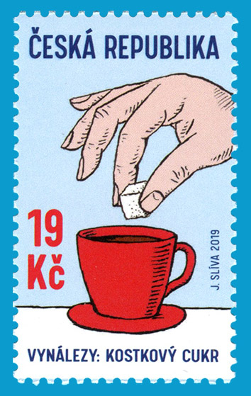 Známka z emise České vynálezy: Kostkový cukr je z dílny autora Jiřího Slívy. Její nominální hodnota je 19 Kč a vytištěna byla technikou plnobarevného ofsetu. Vychází v počtu milion kusů. Spolu se známkou vychází v počtu 3200 kusů také tzv. obálka prvního dne vydání (FDC). Jejím námětem je číšník, který nese jak homoli cukru, tak již zpracovaný kostkový cukr. Rytinu na FDC vytvořil rytec Bohumil Šneider.