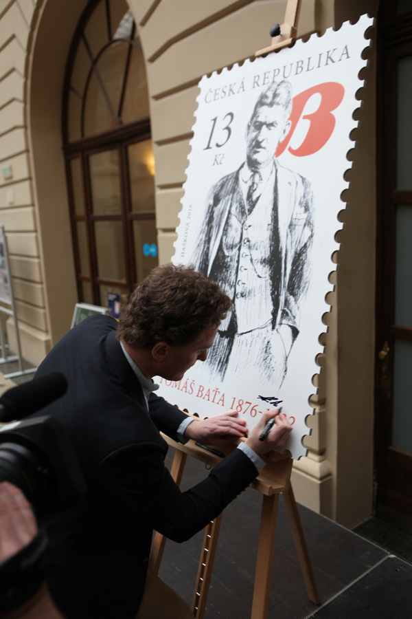 Slavnostního ceremoniálu se zúčastnil také pravnuk Tomáše Bati Thomas Archer Baťa, který v krátkém projevu poděkoval za vydání známky a spolu s Martinem Elkánem, generálním ředitelem České pošty známku představil veřejnosti.