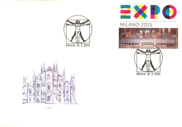 Příležitostný poštovní aršík s jednou známkou nominální hodnoty 25 Kč vydalo Ministerstvo průmyslu a obchodu České republiky dnes, tedy 18. března 2015. Na známce je použito logo EXPO MILAN 2015 v kombinaci s fotografií fresky Leonarda da Vinciho „Poslední večeře páně“, jejíž originál se nachází v milánském kostele Santa Maria delle Grazie. Okolí aršíku je komponováno v souladu s logem EXPA a je na něm datum 1. května – 31. října.