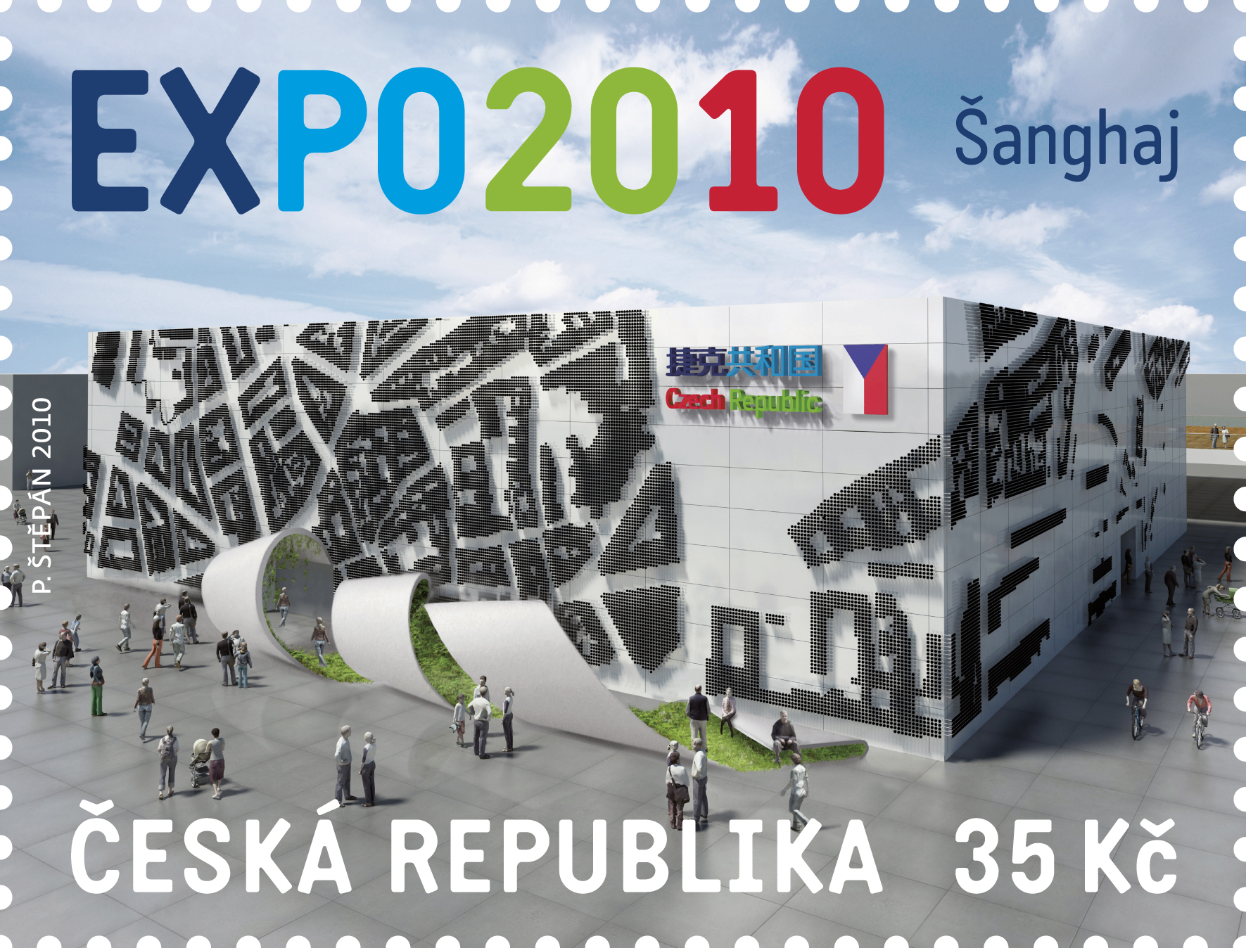 „Motivem příležitostné známky pro EXPO 2010 je český pavilon. Jeho nápaditá fasáda je složena z hokejových puků a před ní leží ohromná elegantní stuha. Pavilon zaujal čínské organizátory Všeobecné světové výstavy natolik, že český pavilon představují na svých vlastních propagačních plakátech," říká generální komisař Pavel Antonín Stehlík, který je současně členem užší správní rady šanghajské výstavy EXPO. „Návštěvníky ovšem nepochybně nadchne i vnitřní expozice s názvem Plody civilizace, která je uchvacujících nápadů plná," uvedl generální komisař účasti České republiky na Všeobecné světové výstavě EXPO 2010 Pavel Antonín Stehlík.