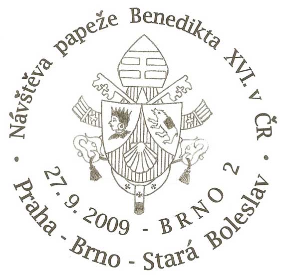 Příležitostné razítko - NÁVŠTĚVA PAPEŽE BENEDIKTA XVI 27.9.2009 - BRNO 2