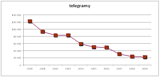 Za rok 2009 přijali pracovníci 3 337 poboček Pošty od občanů celkem 756 telegramů. Tedy v průměru 63 telegramy měsíčně na celém území republiky.