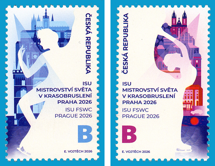 Mistrovství světa v krasobruslení Praha 2026 zdobí poštovní známky