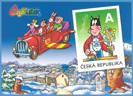 taken from the children comics Čtyřlístek certainly helped boosting the popularity as well. Self-adhesive stamps with Fifinka are running low, in spite of their ongoing reprints. That's why the Czech Post decided to dedicate a special stamp to each of the popular four friends of the series. Starting from tomorrow, you may choose between stamps with the only lady in the Čtyřlístek company - and the newly appearing stamp with Myšpulín the Cat.