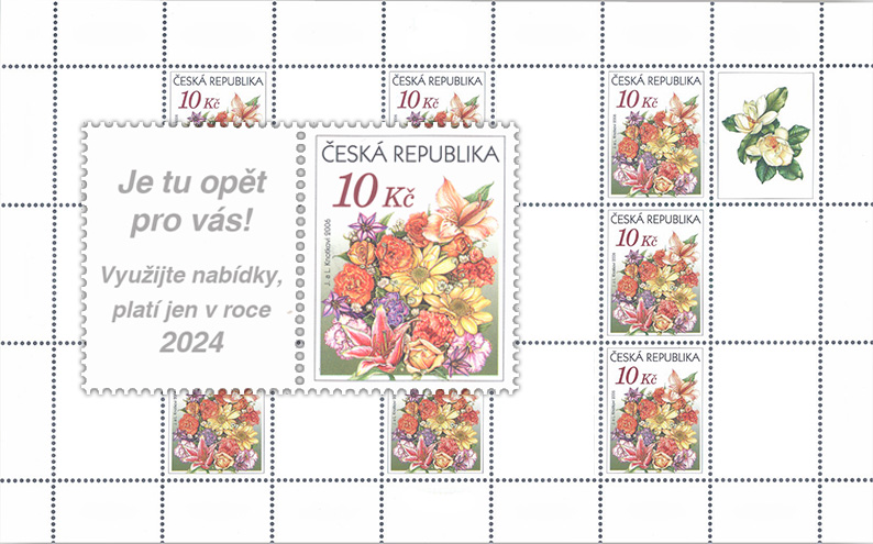 You can buy sheets of 9 stamps plus 9 coupons with the same motif. A different text or picture may appear on the other 2 coupons in the right hand side of the sheet.