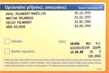 The post office charges a fee for issuing the Card and the Extended Recipient Card in accordance with the valid Price List. The authorization fee for one person is CZK 89, and the fee for issuing the Extended Recipient Card is CZK 20.