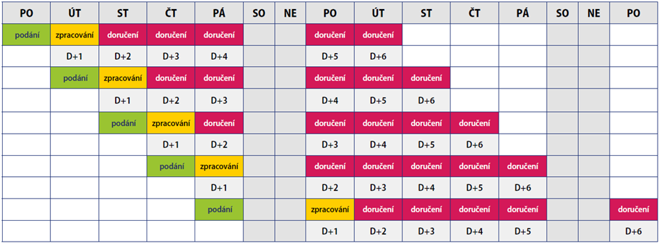 - Doporučené psaní, Firemní psaní – doporučeně: do 5 pracovních dní po dni podání, ale o 5 Kč levněji
