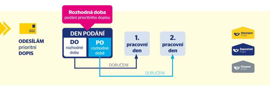 Pro termín doručení vaší zásilky je také důležité, v jaký čas ji na poště podáte. Jde o čas, kdy z pošty fyzicky odvážíme zásilky, tzv. Rozhodnou dobu.