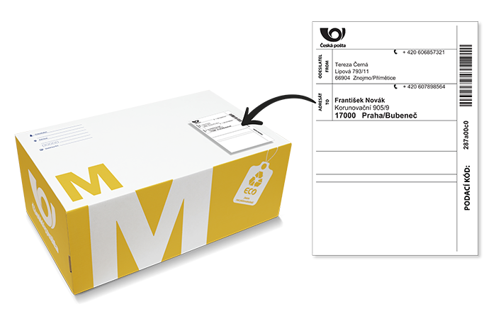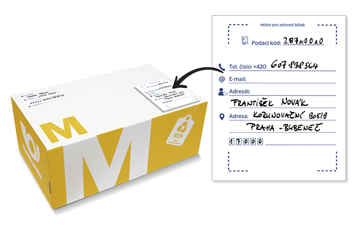 Podací kód a adresní údaje napište ručně na krabici a dál si užívejte slevu za elektronické předání dat.