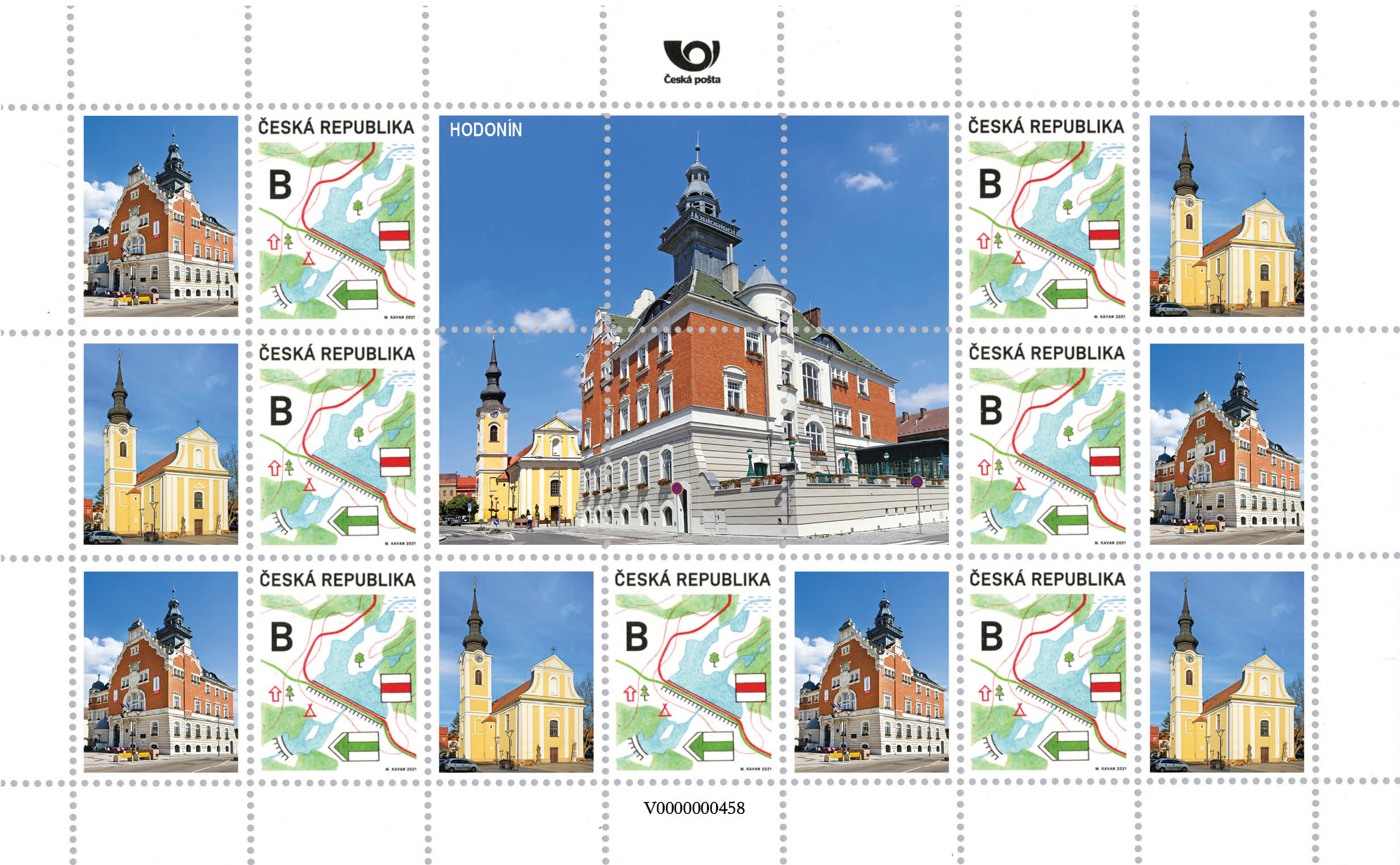 Námět – kombinace dominant města Hodonína. Námětem je městská radnice, postavená ve stylu norimberské secese, vystřídaná pohledem na pozdně barokní kostel svatého Vavřince. Ve středu tiskového listu je pohled na Masarykovo náměstí, na městskou radnici a kostel svatého Vavřince v pozadí.