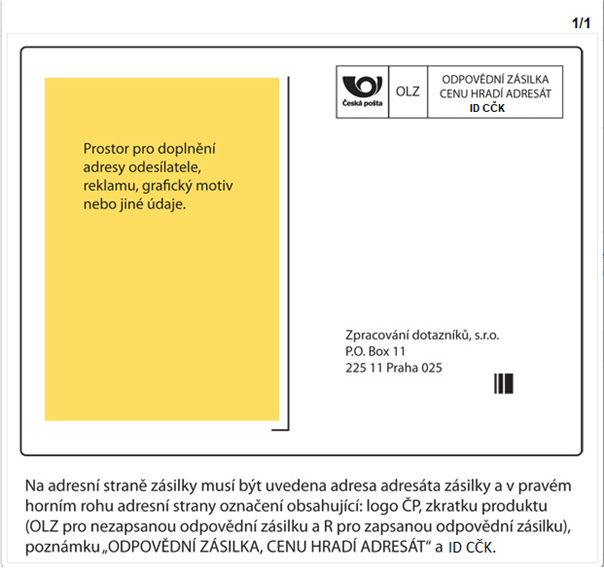 - ČP dodávaný adresní štítek – odpovědní zásilka;